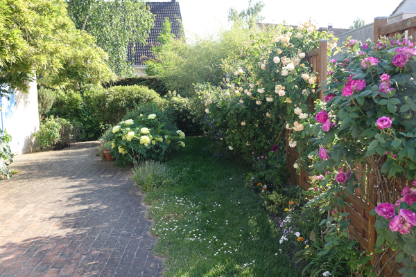 La partie principale du jardin se trouve derrière la maison, à l'abri des regards. Et vous bénéficiez d'un large passage le long de la maison pour vous y rendre.