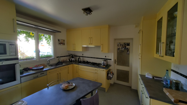 Bien aménagée et fonctionnelle, elle comprend tous les équipements nécessaires (marque Siemens, sauf le réfrigérateur), dont un piano six feux. Et la table permet de manger à cinq personnes.