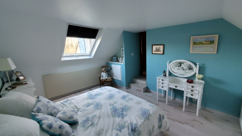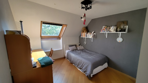 À part la chambre-bureau qui est carrelée, toutes les autres sont parquetées. Et leur petit côté mansardé rajoute un effet cocooning douillet et chaleureux.