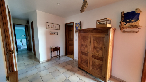 Une fois la porte passée, vous pénétrez dans une belle entrée accueillante. Deux placards discrets permettront à vos invités d'y ranger leurs affaires en arrivant.